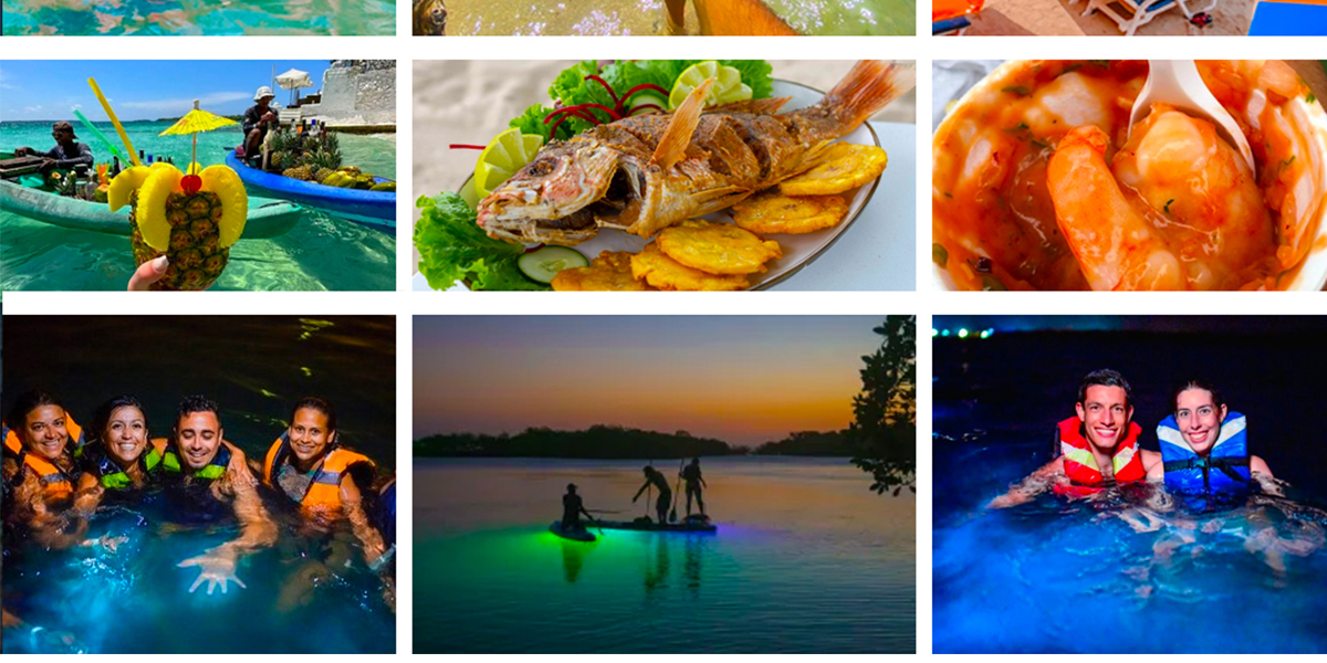 - Almuerzo en la isla privada Coral / Cocotera (Isla grande), tres opciones: pescado frito, pechuga asada, vegetariano; acompañado de arroz con coco, patacones y ensalada.